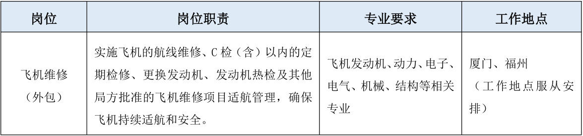 1.厦门航空飞机维修(外包)岗位应聘报名表一张(正反打印,手写签名);